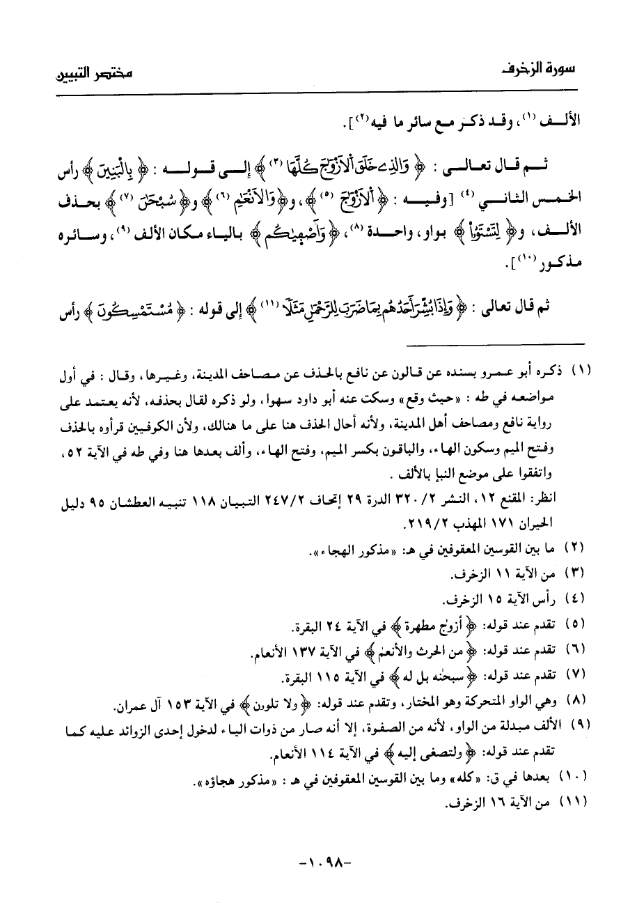 ثم قال تعالى: والذى خلق الازوج كلّها (¬3) إلى قوله: بالبنين رأس الخمس الثاني (¬4) [وفيه: الازوج (¬5)، وو الانعم (¬6) وسبحن (¬7) بحذف الألف، ولتستوا بواو، واحدة (¬8)، وأصفيكم بالياء مكان الألف (¬9)، وسائره مذكور (¬10)].