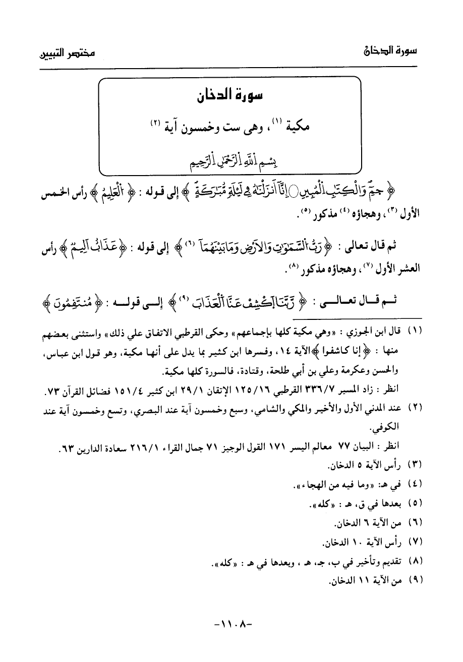 بسم الله الرّحمن الرّحيم حم والكتب المبين* إنّا أنزلنه فى ليلة مبركة إلى قوله: العليم رأس الخمس الأول (¬3)، وهجاؤه (¬4) مذكور (¬5).