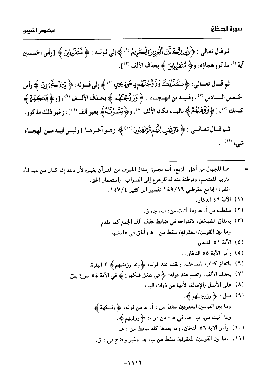 ثم قال تعالى: فارتقب انّهم مّرتقبون (¬10) وهو آخرها [وليس فيه من الهجاء شىء (¬11)].