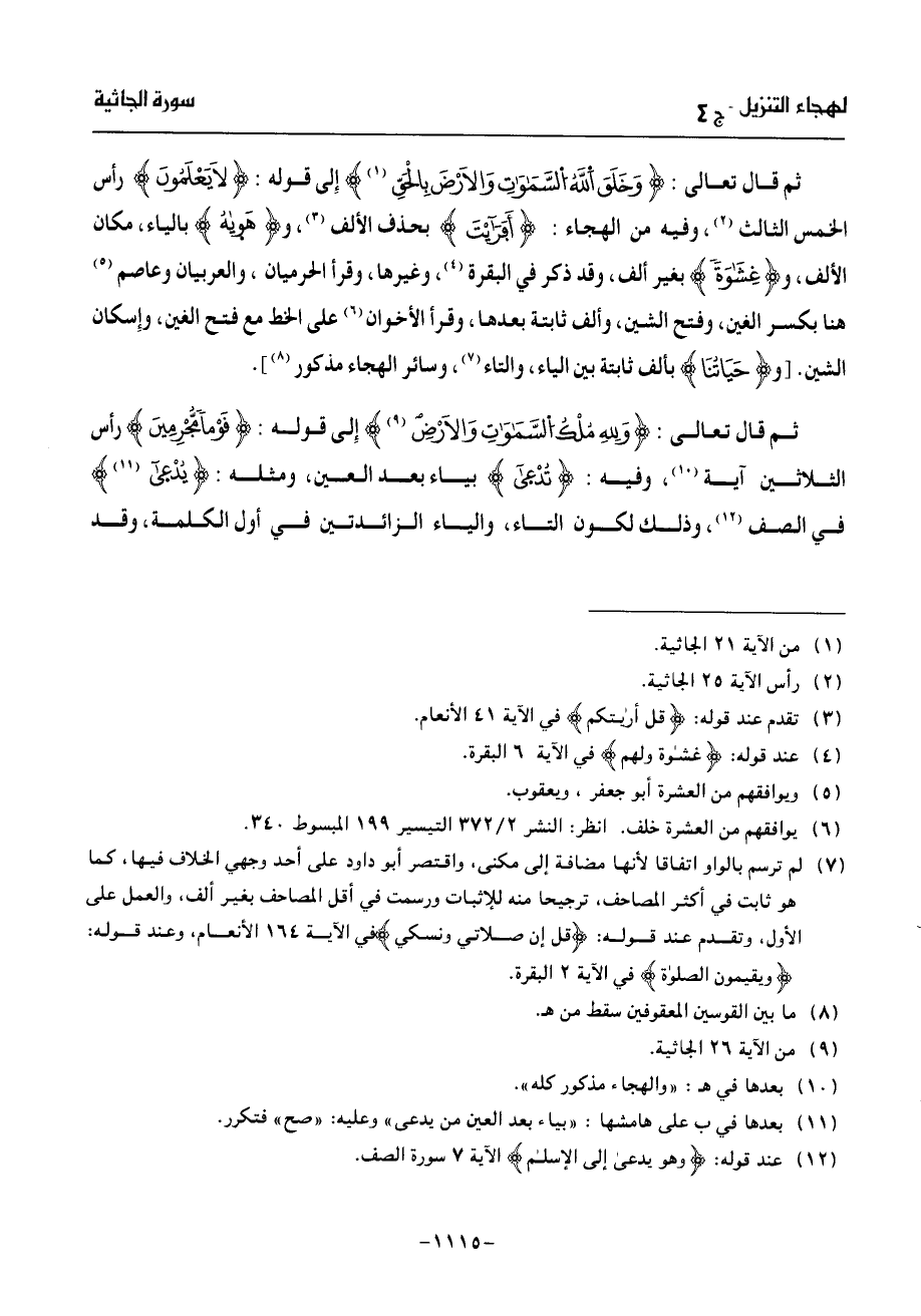 ثم قال تعالى: ولله ملك السّموت والارض (¬9) إلى قوله: قوما مّجرمين رأس الثلاثين آية (¬10)، وفيه: تدعى بياء بعد العين، ومثله: يدعى (¬11) في الصف (¬12)، وذلك لكون التاء، والياء الزائدتين في أول الكلمة، وقد