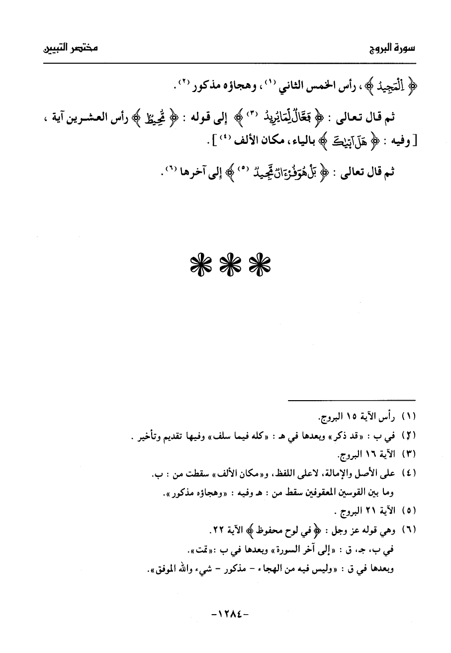 ثم قال تعالى: فعّال لمّا يريد (¬3) إلى قوله: مّحيط رأس العشرين آية، [وفيه: هل اتيك بالياء، مكان الألف (¬4)].