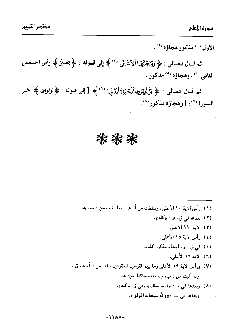 ثم قال تعالى: ويتجنّبها الاشفى (¬3) إلى قوله: فصلّى رأس الخمس الثاني (¬4)، وهجاؤه (¬5) مذكور.