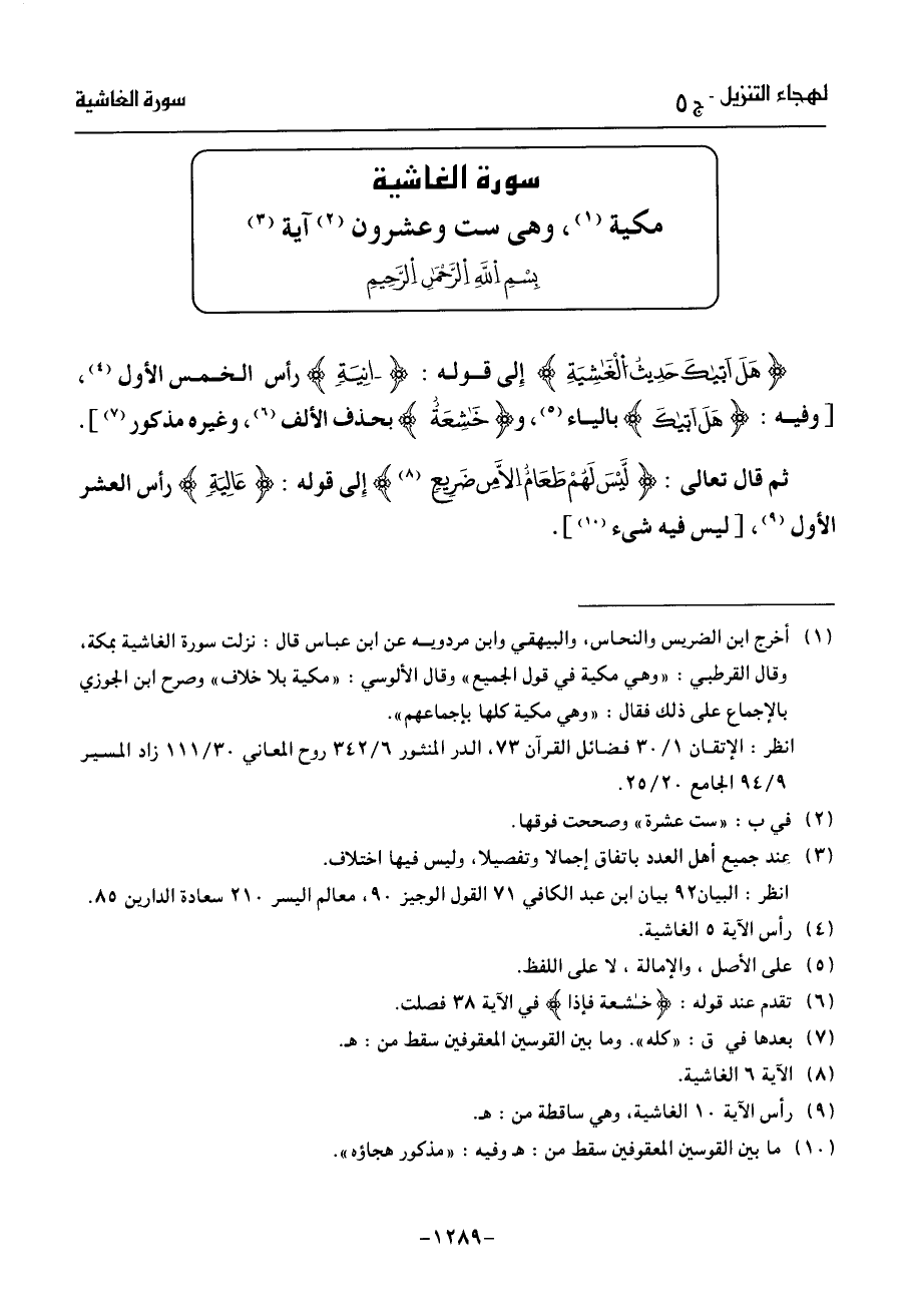 بسم الله الرّحمن الرّحيم هل أتيك حديث الغشية إلى قوله: انية رأس الخمس الأول (¬4)، [وفيه: هل اتيك بالياء (¬5)، وخشعة بحذف الألف (¬6)، وغيره مذكور (¬7)].