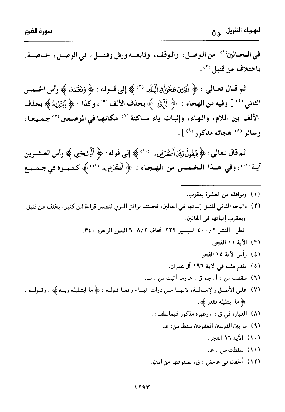 ثم قال تعالى: الذين طغوا فى البلد (¬3) إلى قوله: ونعّمه رأس الخمس الثاني (¬4) [وفيه من الهجاء: البلد بحذف الألف (¬5)، وكذا: ابتليه بحذف الألف بين اللام، والهاء، وإثبات ياء ساكنة (¬6) مكانها في الموضعين (¬7) جميعا، وسائر (¬8) هجائه مذكور (¬9)].