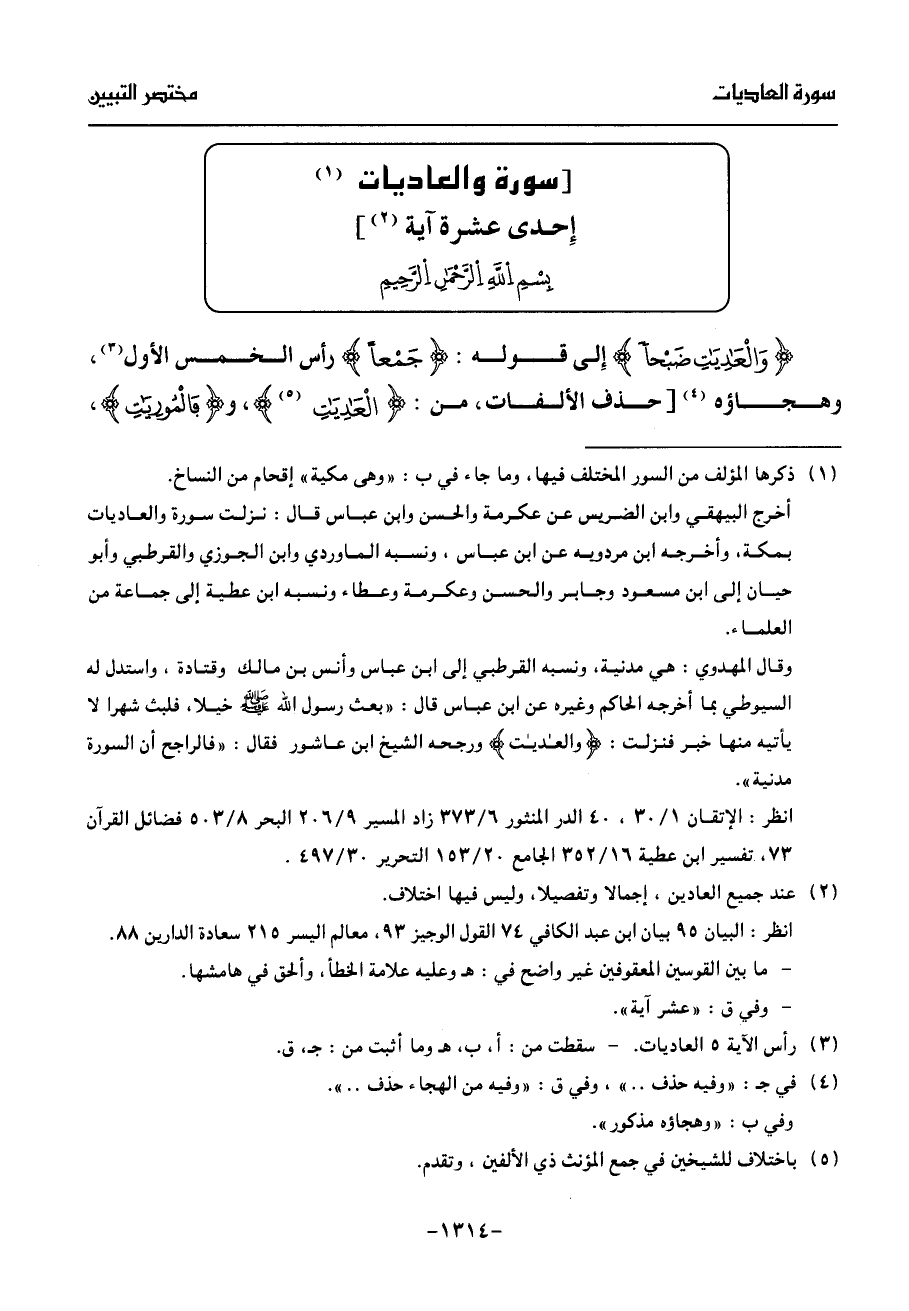 (¬3) رأس الآية 5 العاديات.- سقطت من: أ، ب، هـ وما أثبت من: ج، ق.