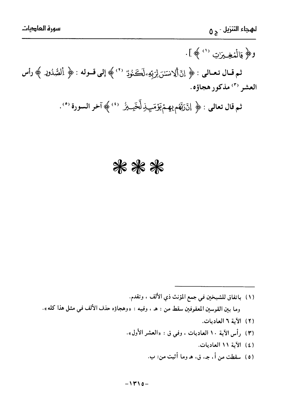 ثم قال تعالى: إنّ الانسن لربّه لكنود (¬2) إلى قوله: الصّدور رأس العشر (¬3) مذكور هجاؤه.