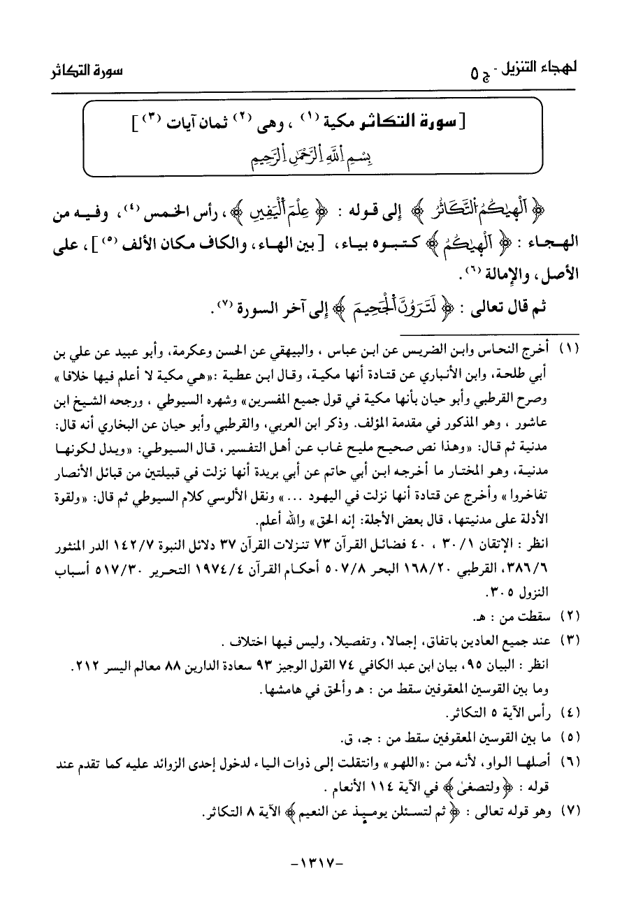 [سورة التكاثر مكية (¬1)، وهى (¬2) ثمان آيات (¬3)]