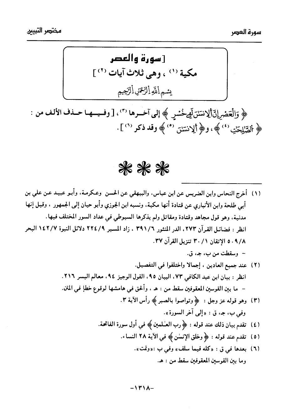 بسم الله الرّحمن الرّحيم والعصر إنّ الانسن لفى خسر إلى آخرها (¬3)، [وفيها حذف الألف من: