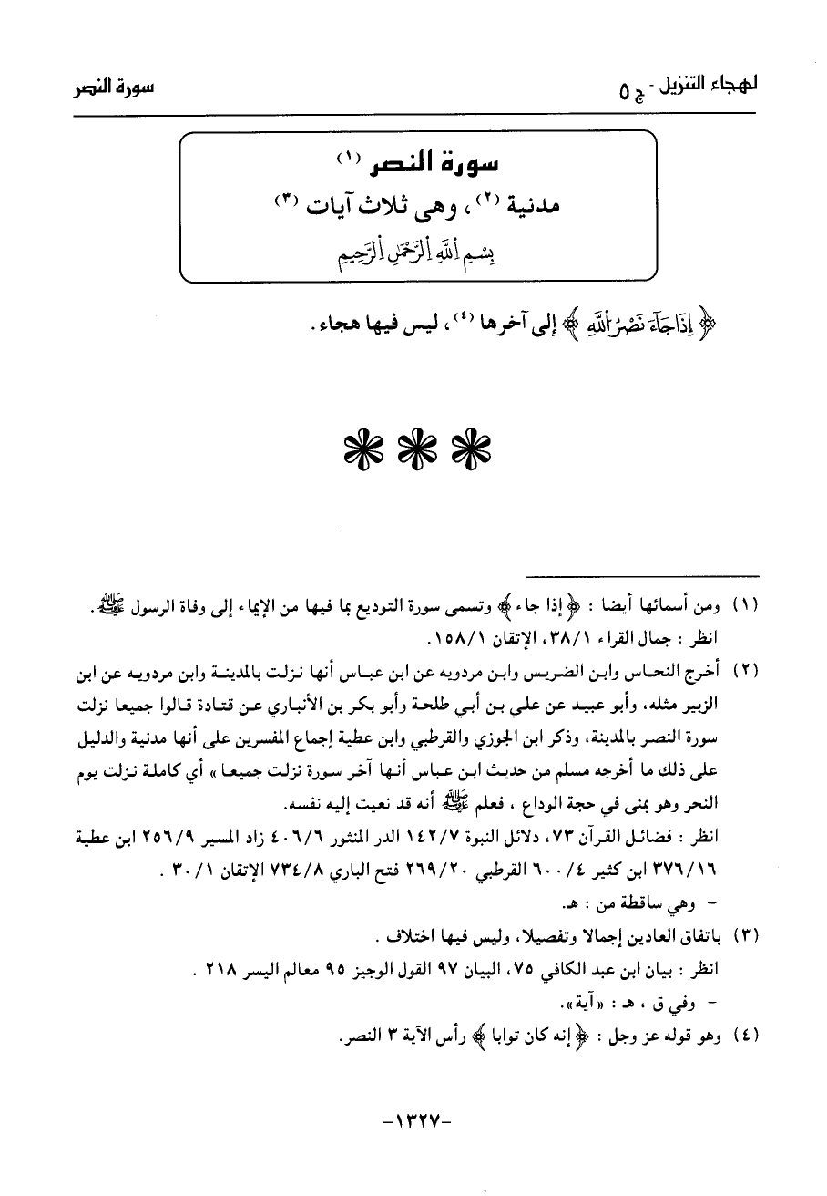 بسم الله الرّحمن الرّحيم إذا جآء نصر الله إلى آخرها (¬4)، ليس فيها هجاء.