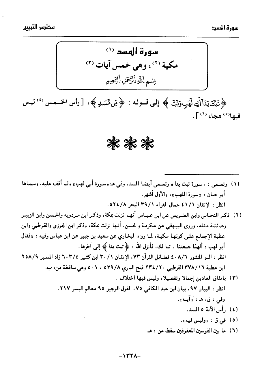بسم الله الرّحمن الرّحيم تبّت يدآ أبى لهب وتبّ إلى قوله: مّن مّسد، [رأس الخمس (¬4) ليس فيها (¬5) هجاء (¬6)].