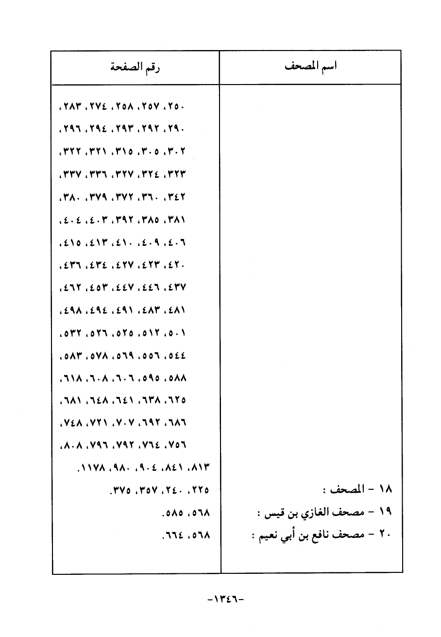 اسم المصحف رقم الصفحة 250، 257، 258، 274، 283، 290، 292، 293، 294، 296، 302، 305، 315، 321، 322، 323، 324، 327، 336، 337، 342، 360، 372، 379، 380، 381، 385، 392، 403، 404، 406، 409، 410، 413، 415، 420، 423، 427، 434، 436، 437، 446، 447، 453، 462، 481، 483، 491، 494، 498، 501، 512، 525، 526، 532، 544، 556، 569، 578، 583، 588، 595، 606، 608، 618، 625، 638، 641، 648، 681، 686، 692، 707، 721، 748، 756، 764، 792، 796، 808، 813، 841، 904، 980، 1178.