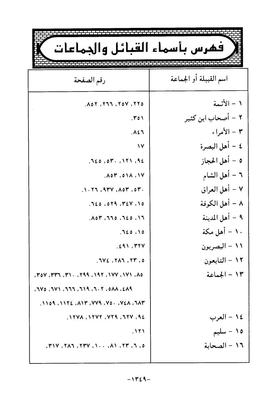 اسم القبيلة أو الجماعة رقم الصفحة 1 - الأئمة 225، 257، 266، 852.