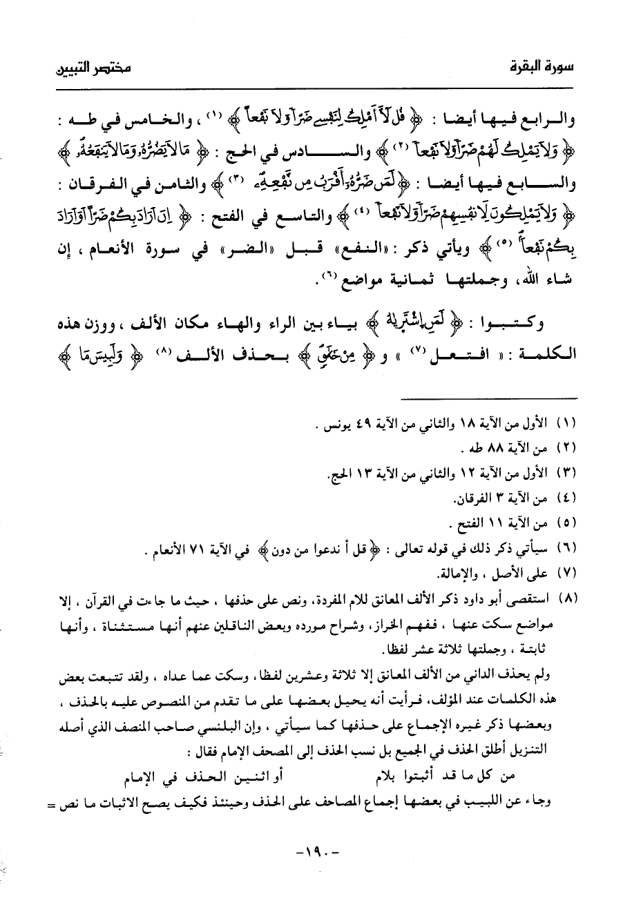 ولا يملك لهم ضرّا ولا نفعا (¬2) والسادس في الحج: ما لا يضرّه وما لا ينفعه والسابع فيها أيضا: لمن ضرّه أقرب من نّفعه (¬3) والثامن في الفرقان: