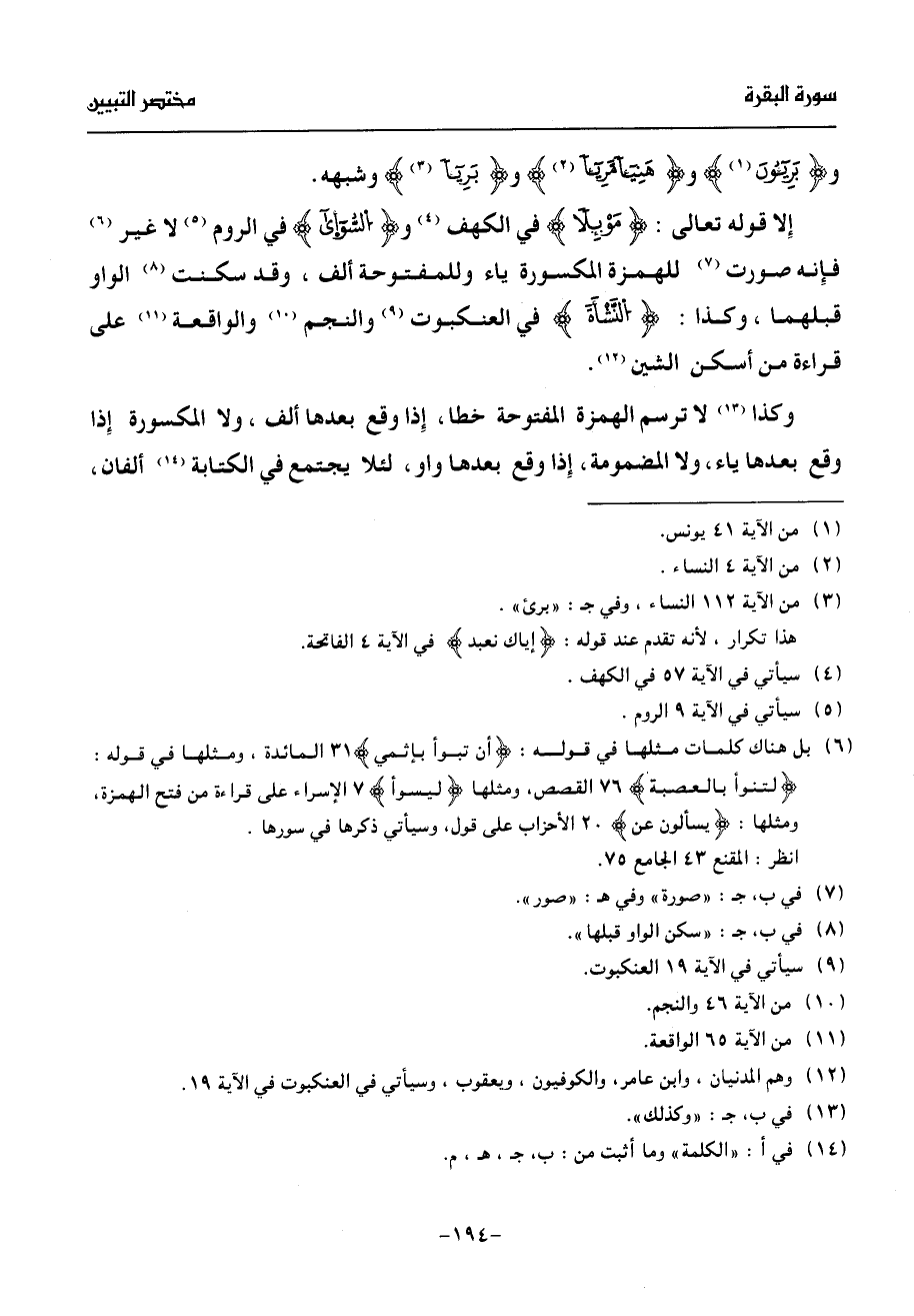(¬6) بل هناك كلمات مثلها في قوله: أن تبوأ بإثمي 31 المائدة، ومثلها في قوله: