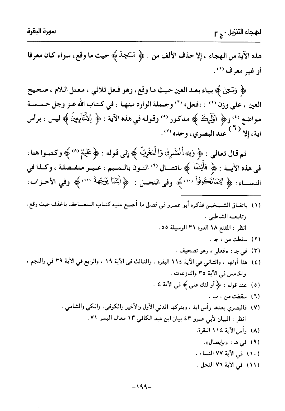 هذه الآية من الهجاء، إلا حذف الألف من: مسجد حيث ما وقع، سواء كان معرفا أو غير معرف (¬1).