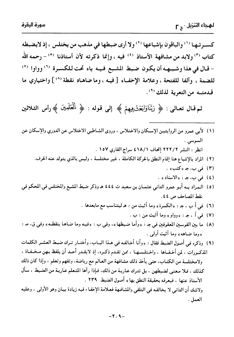 (¬5) المراد به أبو عمرو الداني عثمان بن سعيد ت 444 هـ وذكر ضبط المشبع والمختلس في المحكم في نقط المصاحف ص 44.