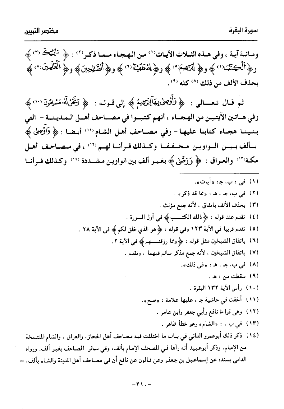 ثم قال تعالى: وأوصى بها إبراهيم إلى قوله: ونحن له مسلمون (¬10) وفي هاتين الآيتين من الهجاء، أنهم كتبوا في مصاحف أهل المدينة- التي بنينا هجاء كتابنا عليها- وفي مصاحف أهل الشام (¬11) أيضا: وأوصى بألف بين الواوين مخففا وكذلك قرأنا لهم (¬12)، في مصاحف أهل مكة (¬13) والعراق: ووصّى بغير ألف بين الواوين مشددة (¬14) وكذلك قرأنا