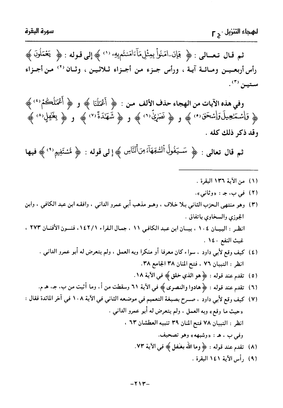 وفي هذه الآيات من الهجاء حذف الألف من: أعملنا وأعملكم (¬4) وإسمعيل وإسحق (¬5) ونصرى (¬6) وشهدة (¬7) وبغفل (¬8) وقد ذكر ذلك كله.