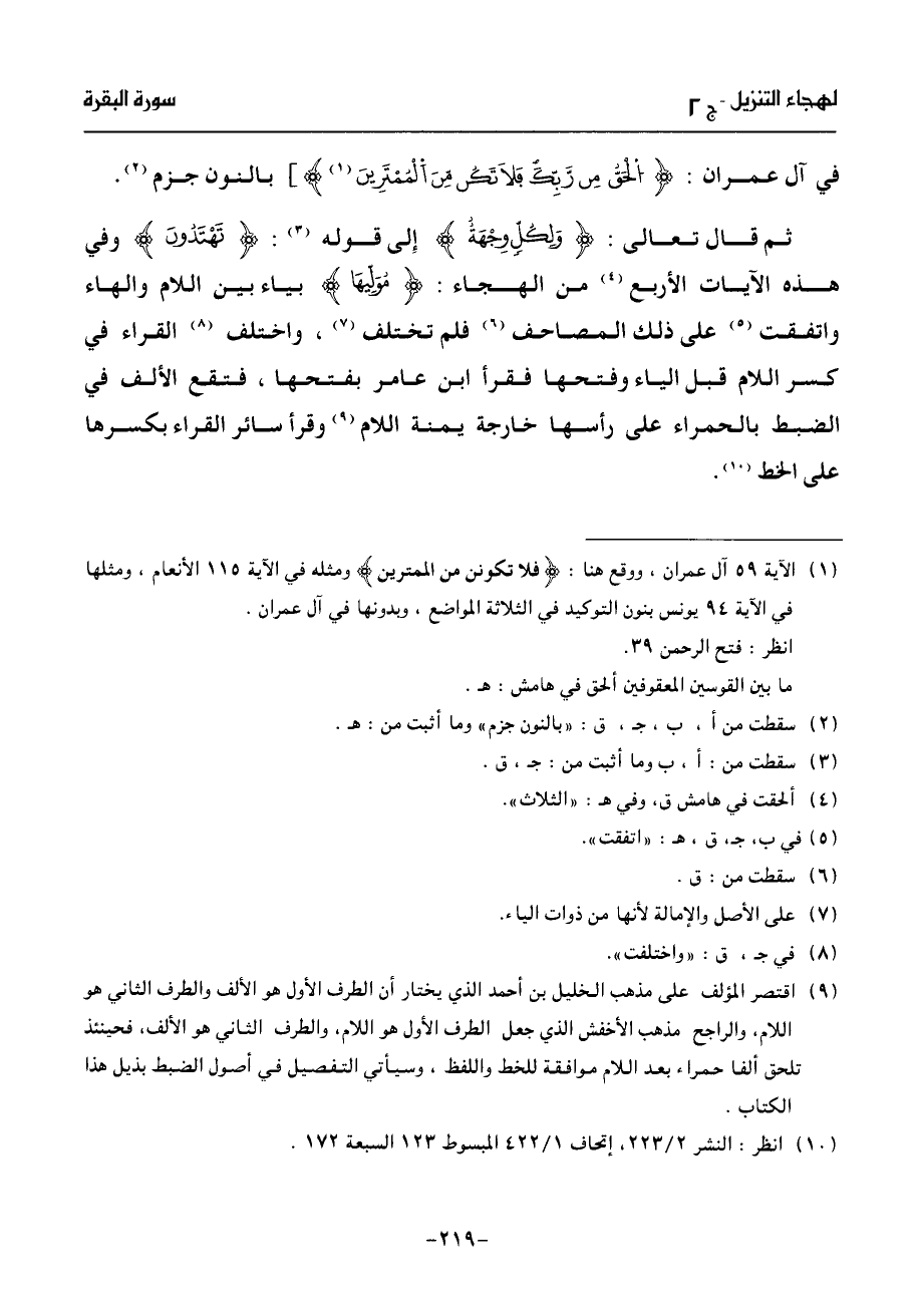 (¬10) انظر: النشر 2/ 223، إتحاف 1/ 422 المبسوط 123 السبعة 172.