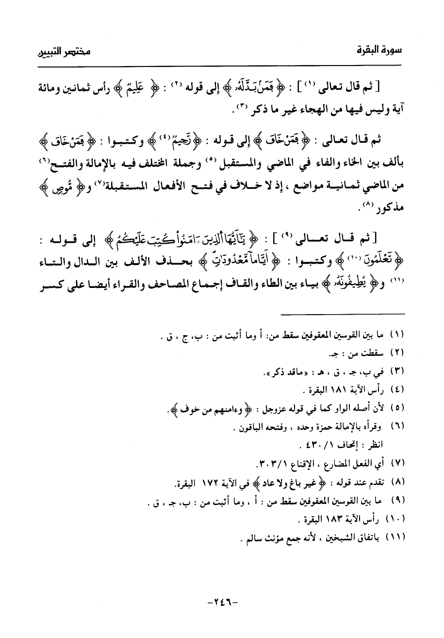 تعلمون (¬10) وكتبوا: أيّاما مّعدودت بحذف الألف بين الدال والتاء (¬11) ويطيقونه بياء بين الطاء والقاف إجماع المصاحف والقراء أيضا على كسر
