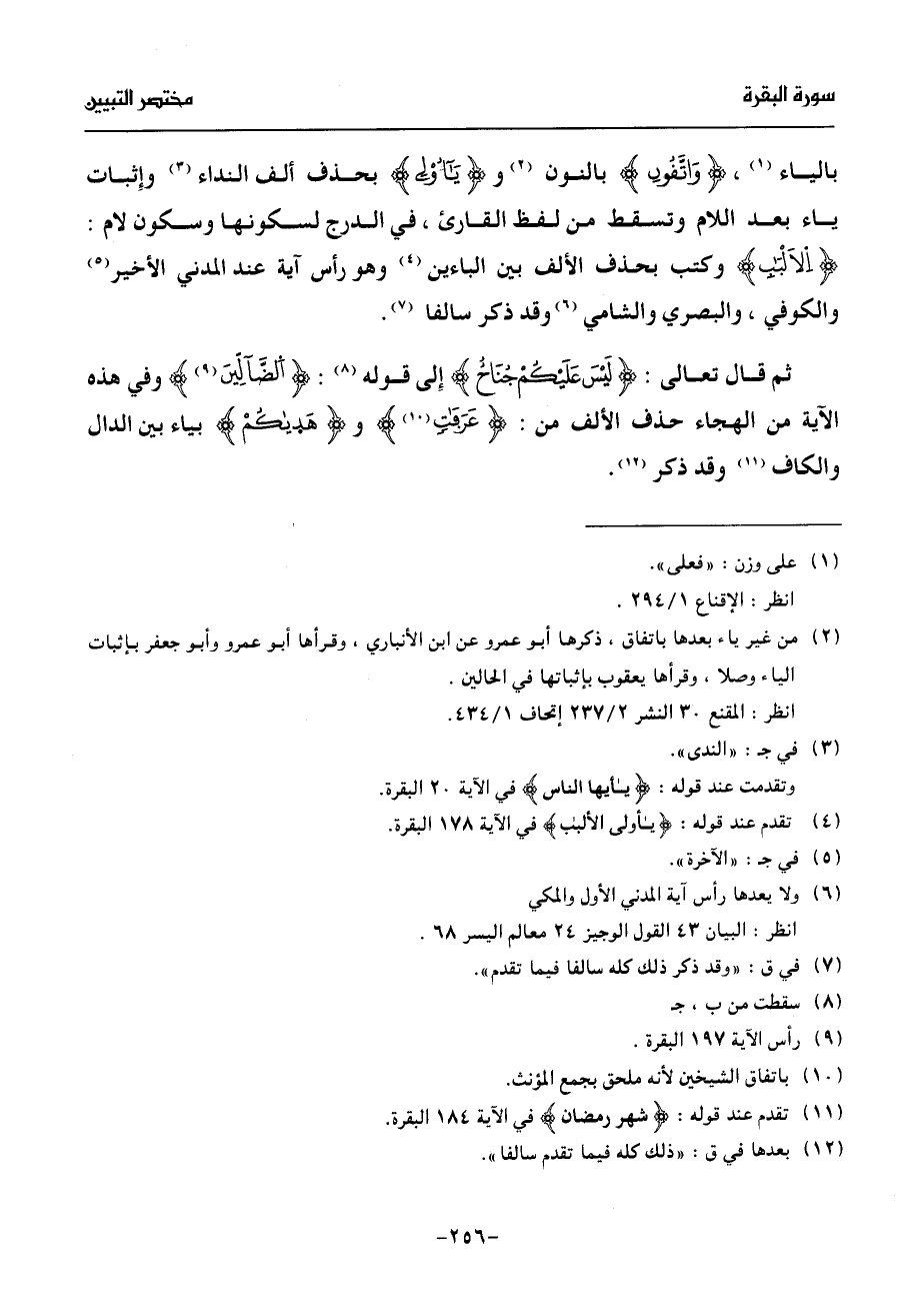 (¬2) من غير ياء بعدها باتفاق، ذكرها أبو عمرو عن ابن الأنباري، وقرأها أبو عمرو وأبو جعفر بإثبات الياء وصلا، وقرأها يعقوب بإثباتها في الحالين.