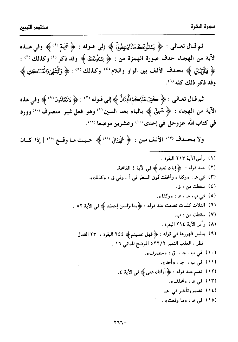 ثم قال تعالى: يسئلونك ماذا ينفقون إلى قوله: عليم (¬1) وفي هذه الآية من الهجاء حذف صورة الهمزة من: يسئلونك وقد ذكر (¬2) وكذلك (¬3):