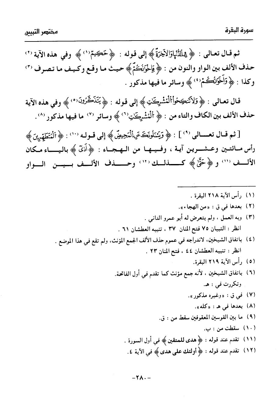 [ثم قال تعالى (¬9)]: ويسئلونك عن المحيض إلى قوله (¬10): المتطهّرين رأس مائتين وعشرين آية، وفيها من الهجاء: أذى بالياء مكان الألف (¬11) وحتّى كذلك (¬12) وحذف الألف بين الواو