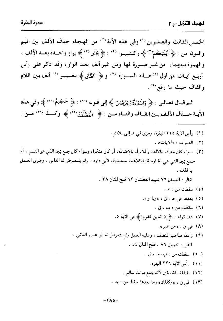 (¬1) رأس الآية 225 البقرة، وجزئ في هـ إلى ثلاث.