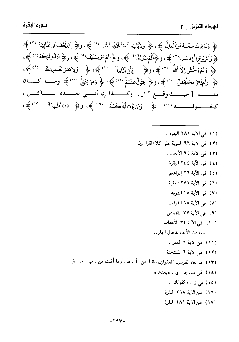 ولم يوت سعة مّن المال، ولا ياب كاتب ان يّكتب (¬1)، وإن يّعف عن طائفة (¬2) ولم يوح إليه شىء (¬3)، وألم تر إلى (¬4)، والم تر كيف (¬5)، ويوفّ إليكم (¬6)، ولم يخش إلّا الله (¬7)، ويلق أثاما (¬8)، ولا تنس نصيبك (¬9)، ولم يعى بخلقهنّ (¬10)، وفتولّ عنهم (¬11)، ومن يّتولّ (¬12) وما كان مثله [حيث وقع (¬13)]، وكذا إن أتى بعده (¬14) ساكن، كقوله (¬15): ومن يّوت الحكمة (¬16)، وياب الشّهداء (¬17)،