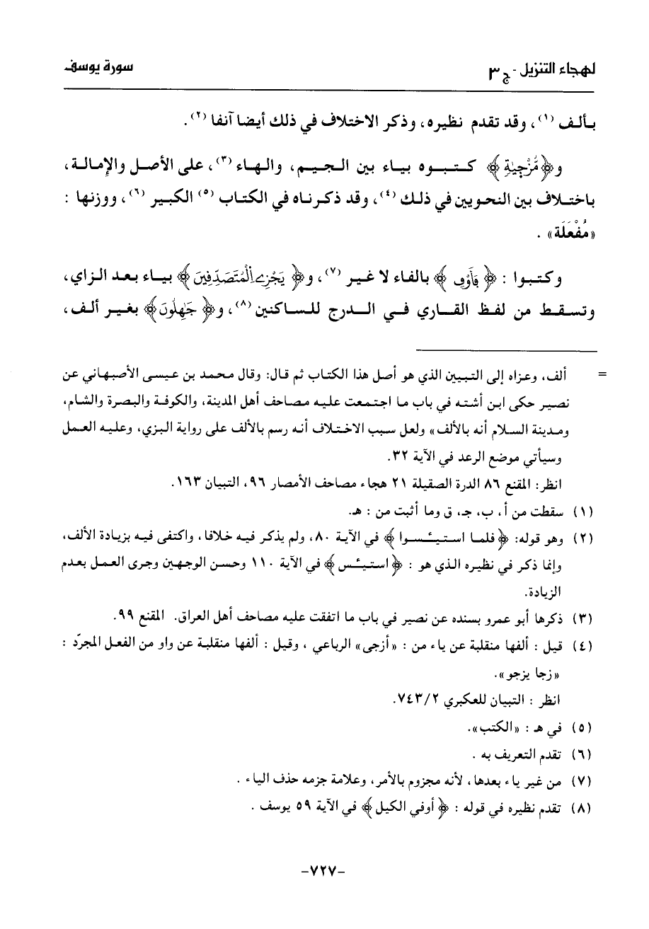 انظر: المقنع 86 الدرة الصقيلة 21 هجاء مصاحف الأمصار 96، التبيان 163.