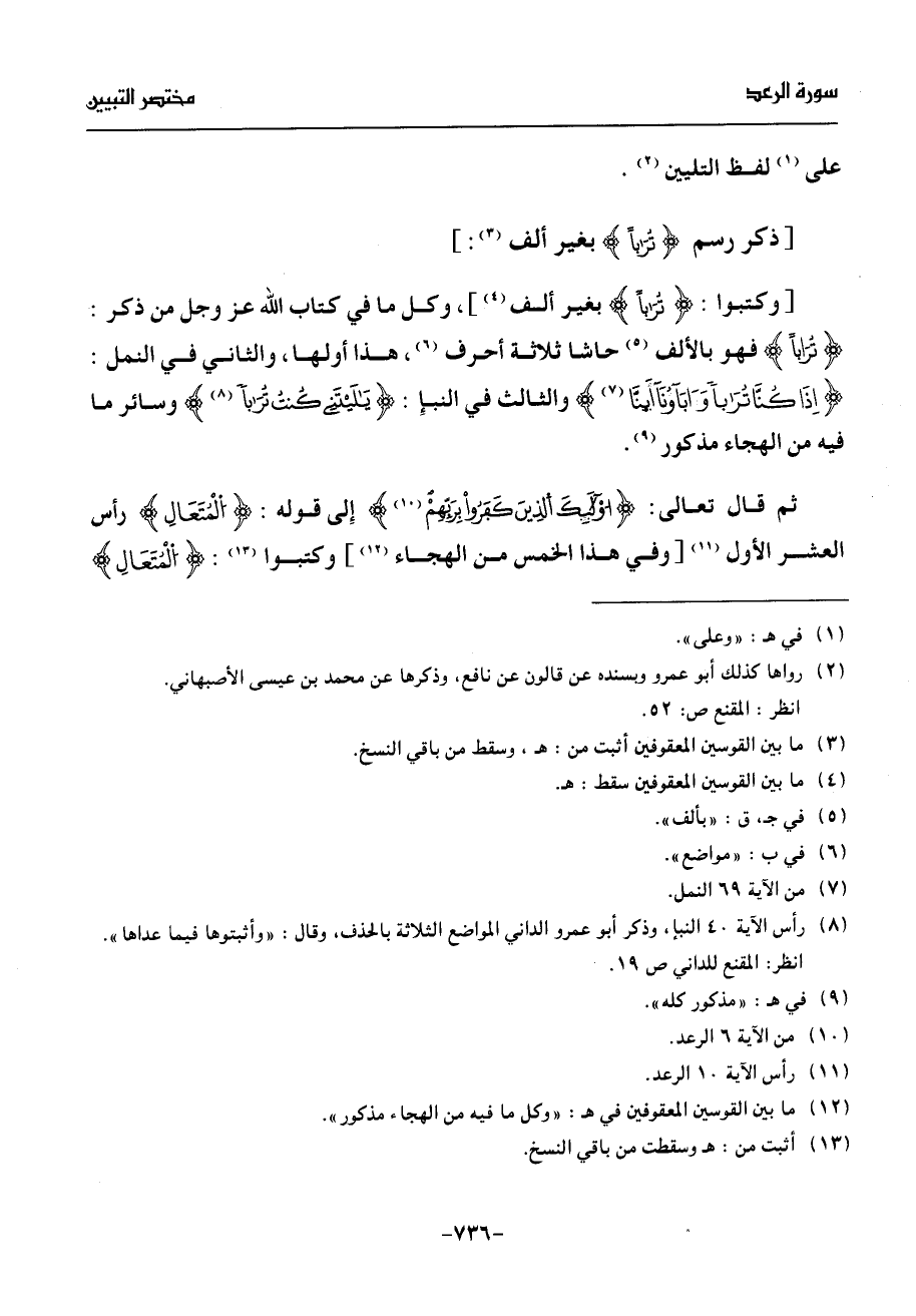 إذا كنّا تربا وءابآؤنا أينّا (¬7) والثالث في النبإ: يليتنى كنت تربا (¬8) وسائر ما فيه من الهجاء مذكور (¬9).
