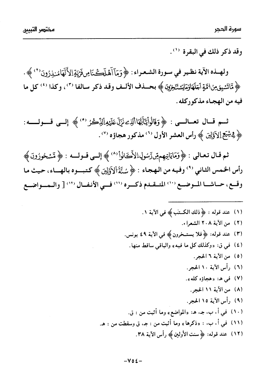 ثم قال تعالى: وما ياتيهم مّن رّسول الّا كانوا (¬8) إلى قوله: مّسحورون رأس الخمس الثاني (¬9) وفيه من الهجاء: سنّة الاوّلين كتبوه بالهاء، حيث ما وقع، حاشا الموضع (¬10) المتقدم ذكره (¬11) في الأنفال (¬12) [والمواضع