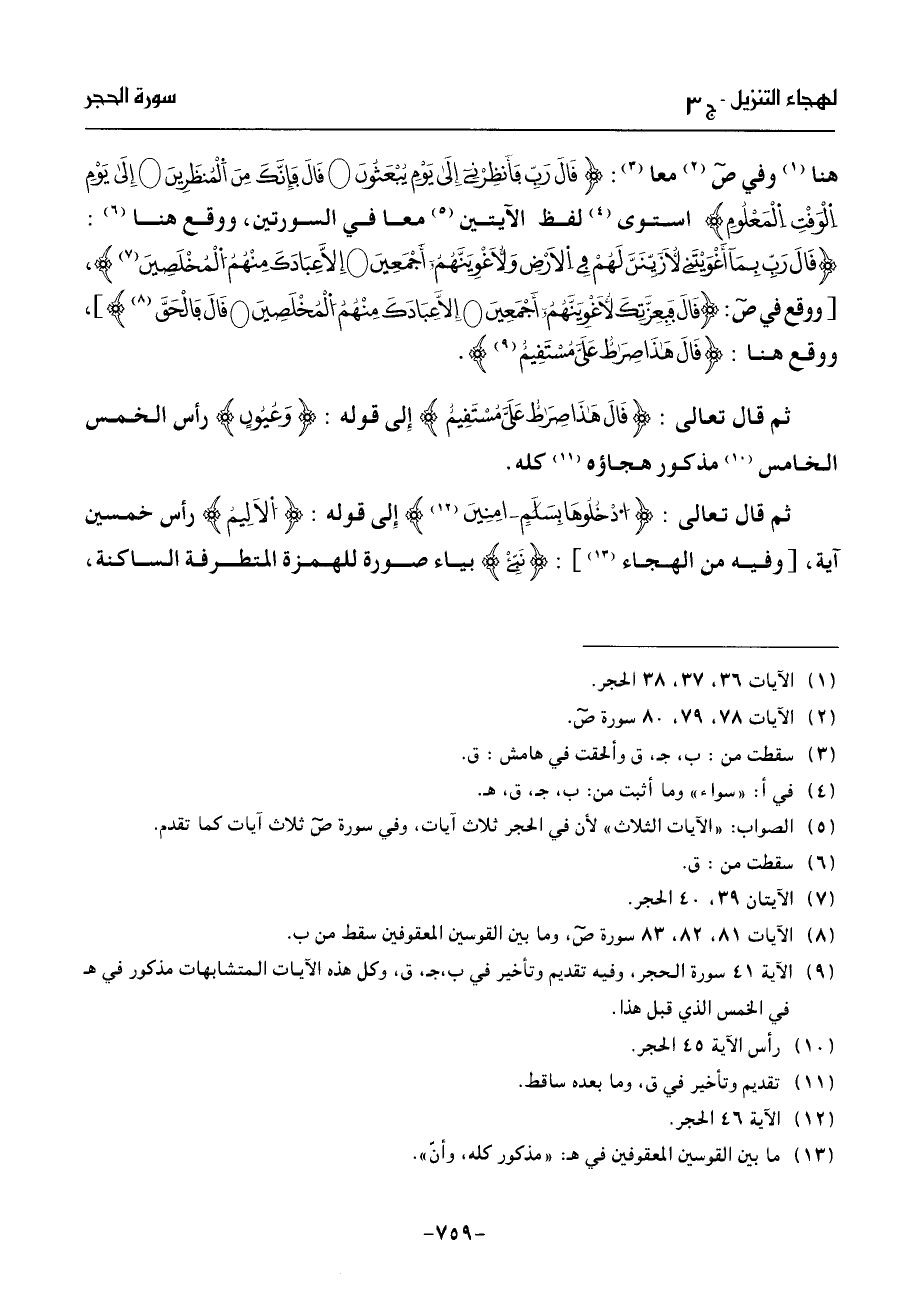 (¬5) الصواب: «الآيات الثلاث» لأن في الحجر ثلاث آيات، وفي سورة ص ثلاث آيات كما تقدم.
