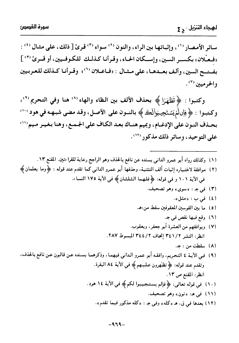 وكتبوا: تظهرا بحذف الألف بين الظاء والهاء (¬8) هنا وفي التحريم (¬9)، وكتبوا: فإن لّم يستجيبوا لك بالنون على الأصل، وقد مضى شبهه في هود (¬10) بحذف النون على الإدغام، وبميم هناك بعد الكاف على الجمع، وهنا بغير ميم (¬11) على التوحيد، وسائر ذلك مذكور (¬12).
