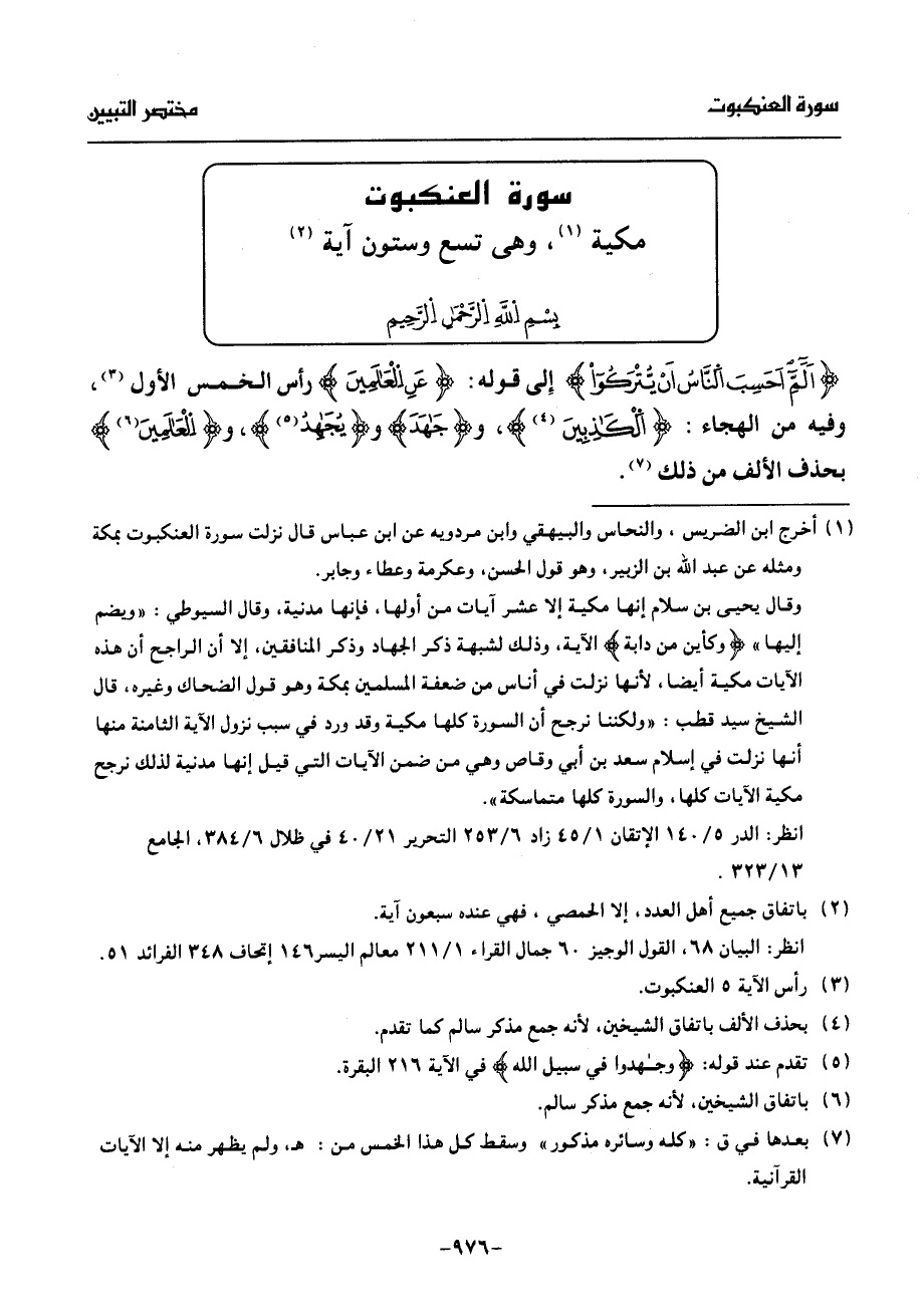 (¬1) أخرج ابن الضريس، والنحاس والبيهقي وابن مردويه عن ابن عباس قال نزلت سورة العنكبوت بمكة ومثله عن عبد الله بن الزبير، وهو قول الحسن، وعكرمة وعطاء وجابر.