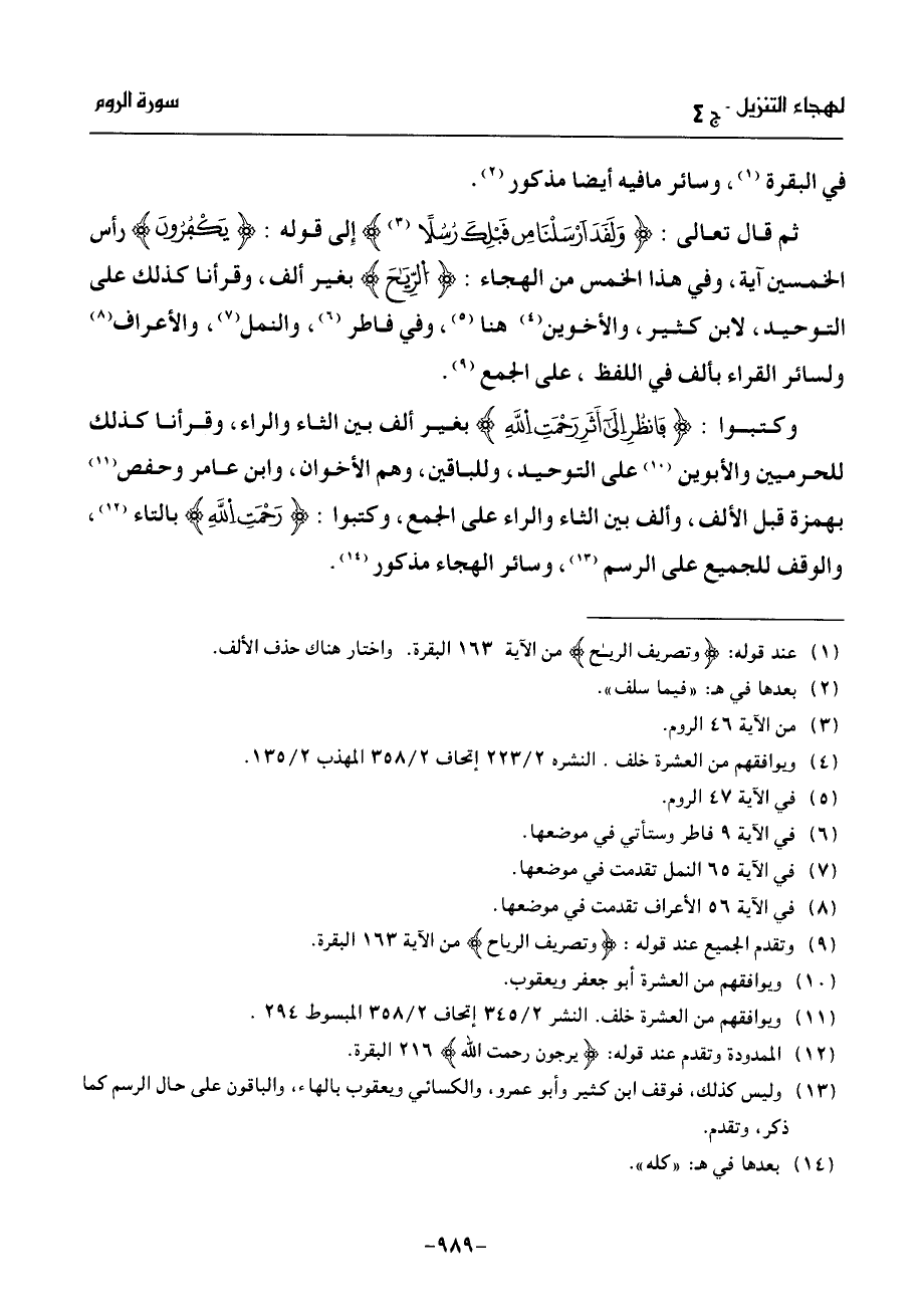 ثم قال تعالى: ولقد أرسلنا من قبلك رسلا (¬3) إلى قوله: يكفرون رأس الخمسين آية، وفي هذا الخمس من الهجاء: الرّيح بغير ألف، وقرأنا كذلك على التوحيد، لابن كثير، والأخوين (¬4) هنا (¬5)، وفي فاطر (¬6)، والنمل (¬7)، والأعراف (¬8) ولسائر القراء بألف في اللفظ، على الجمع (¬9).