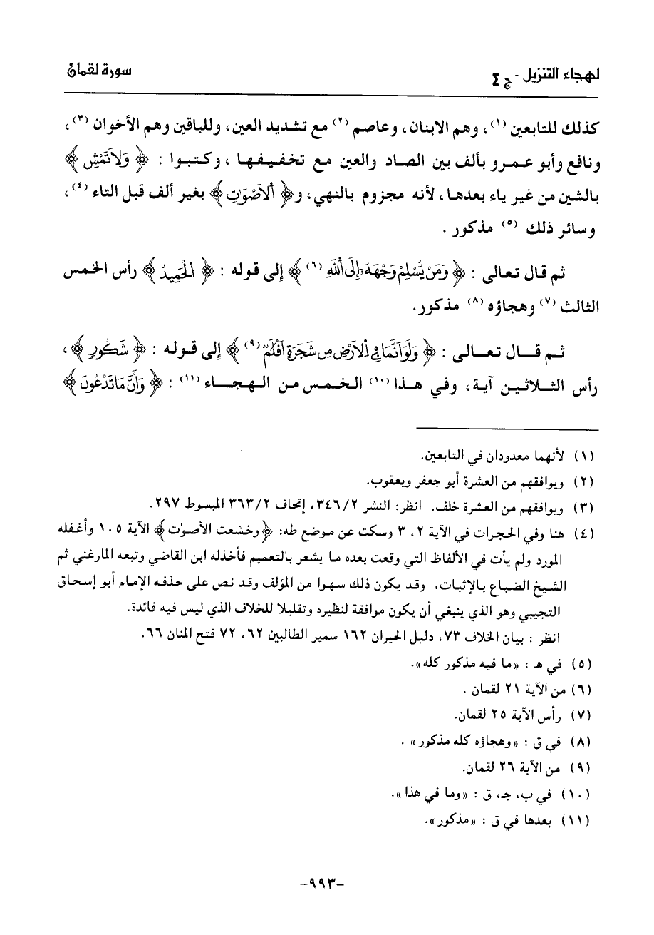 ثم قال تعالى: ومن يّسلم وجهه إلى الله (¬6) إلى قوله: الحميد رأس الخمس الثالث (¬7) وهجاؤه (¬8) مذكور.