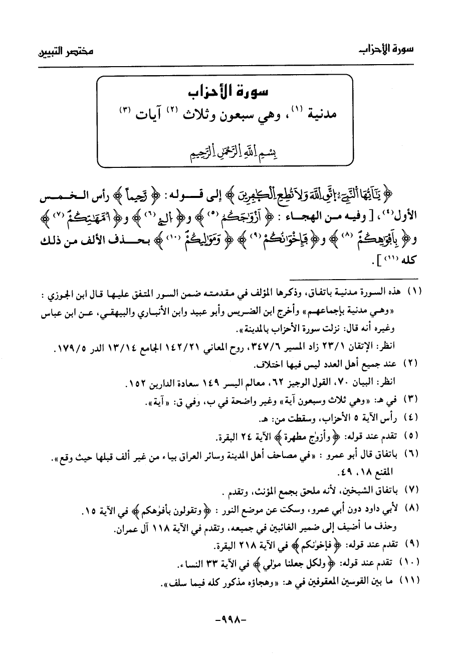 سورة الأحزاب مدنية (¬1)، وهي سبعون وثلاث (¬2) آيات (¬3)