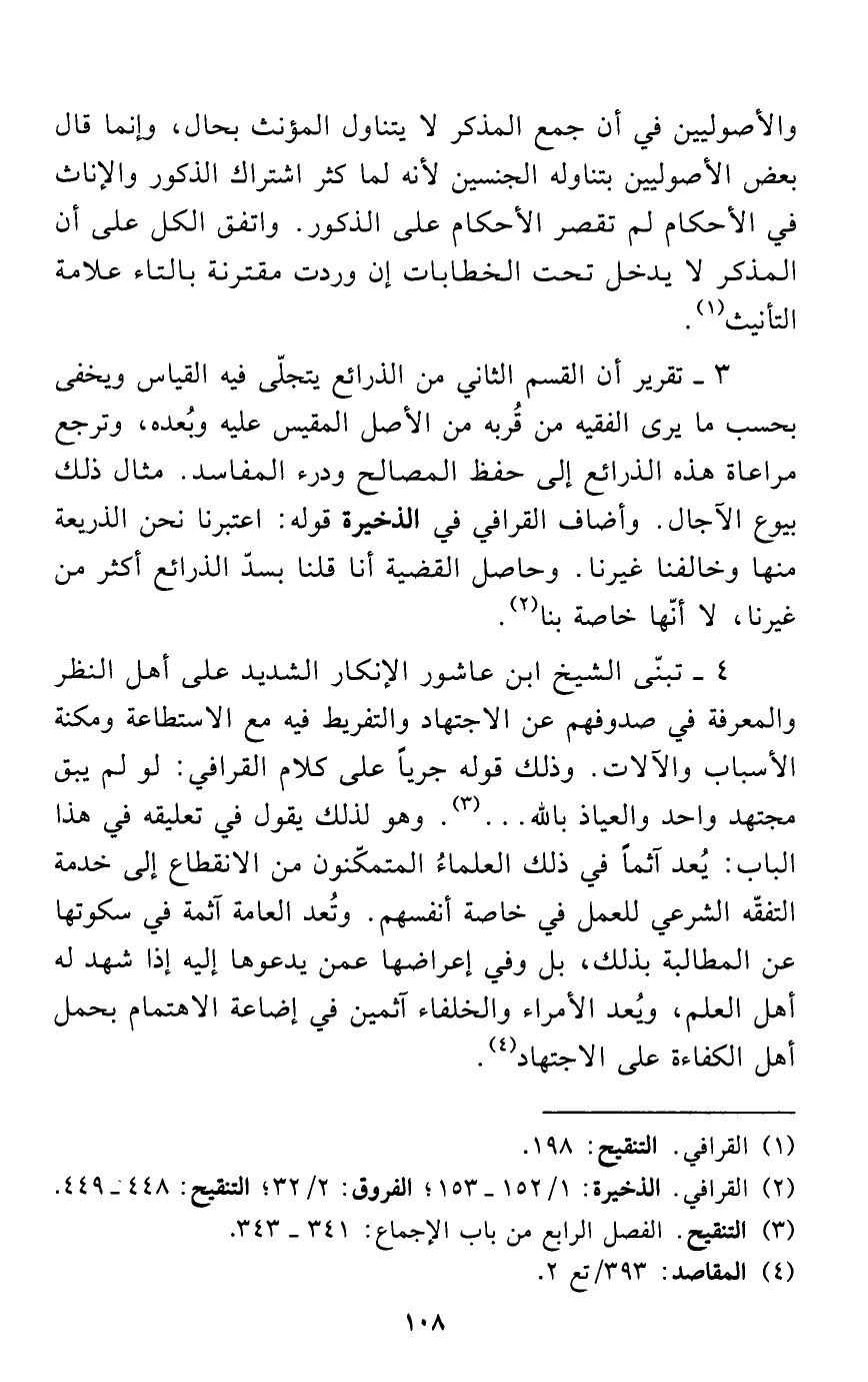 (¬2) القرافي. الذخيرة: 1/ 152 - 153؛ الفروق: 2/ 32؛ التنقيح: 448 - 449.