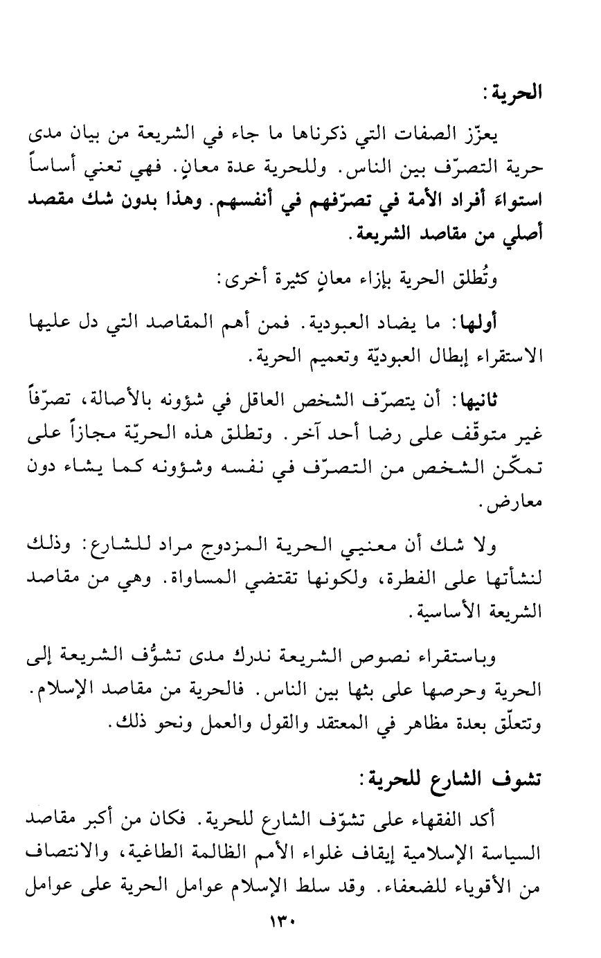 ولا شك أن معنيي الحرية المزدوج مراد للشارع: وذلك لنشأتها على الفطرة، ولكونها تقتضي المساواة. وهي من مقاصد الشريعة الأساسية.