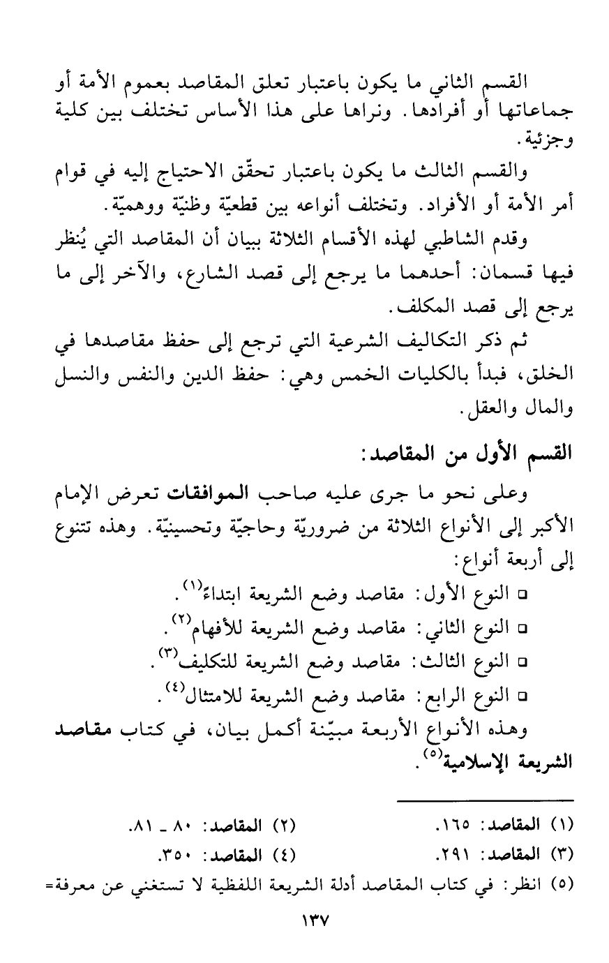 وهذه الأنواع الأربعة مبيّنة أكمل بيان، في كتاب مقاصد الشريعة الإسلامية (¬5).