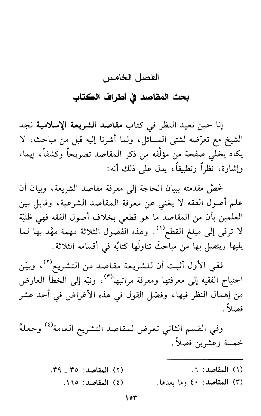 وفي القسم الثاني تعرض لمقاصد التشريع العامة (¬4) وجعلهُ خمسة وعشرين فصلاً.