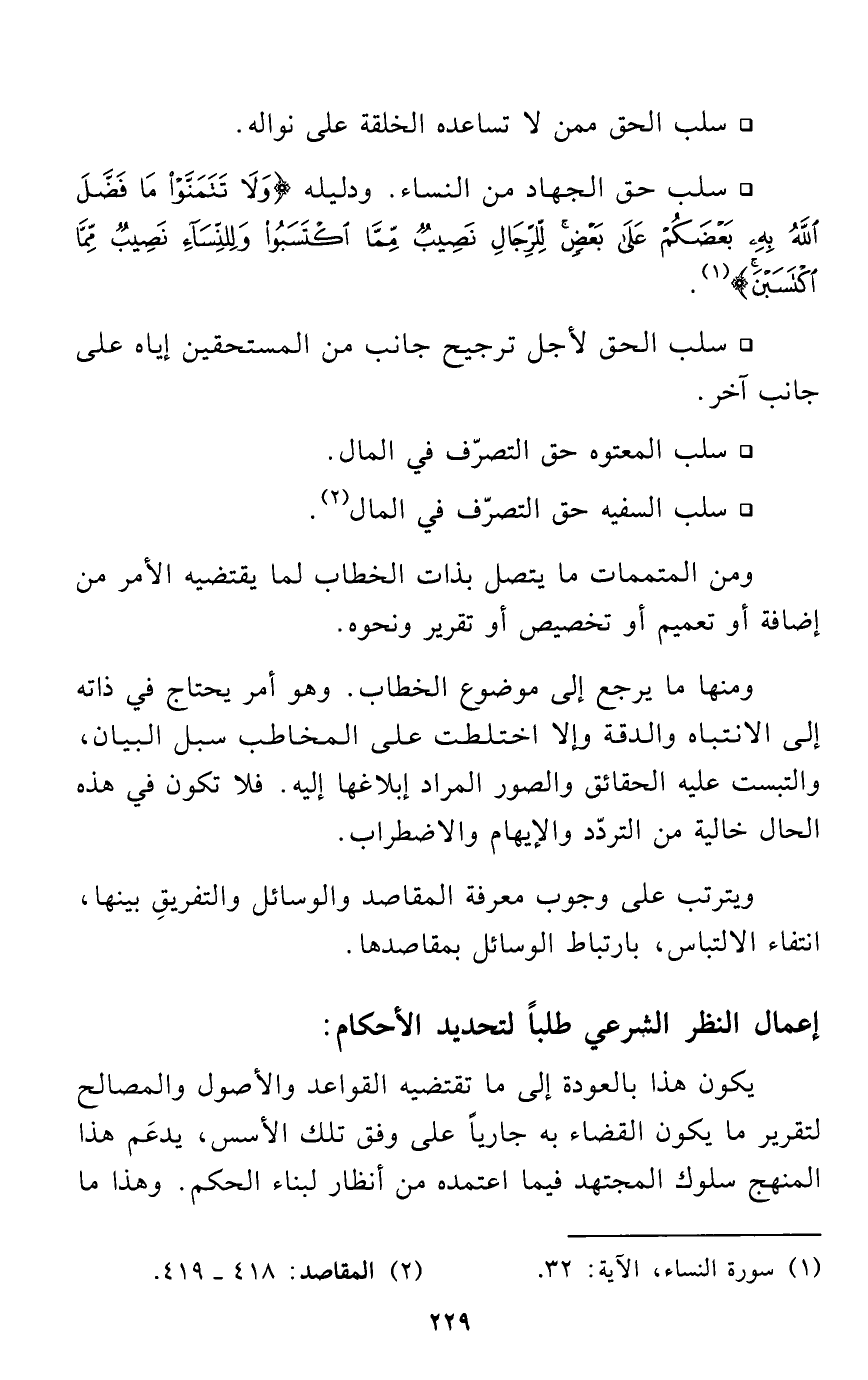 ° سلب الحق ممن لا تساعده الخلقة على نواله.