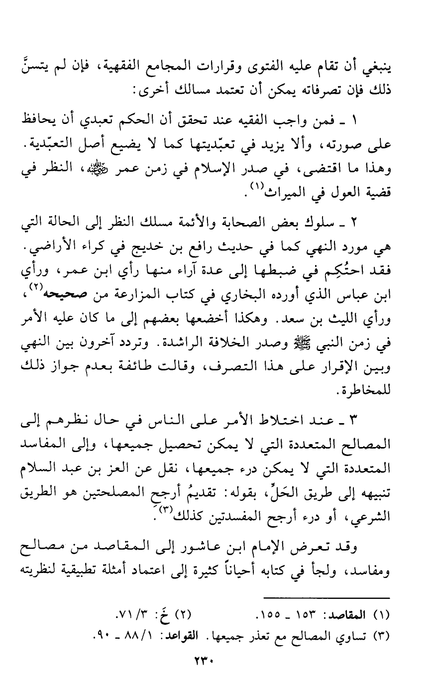 1 - فمن واجب الفقيه عند تحقق أن الحكم تعبدي أن يحافظ على صورته، وألا يزيد في تعبّديتها كما لا يضيع أصل التعبّدية. وهذا ما اقتضى، في صدر الإسلام في زمن عمر - رضي الله عنه -، النظر في قضية العول في الميراث (¬1).