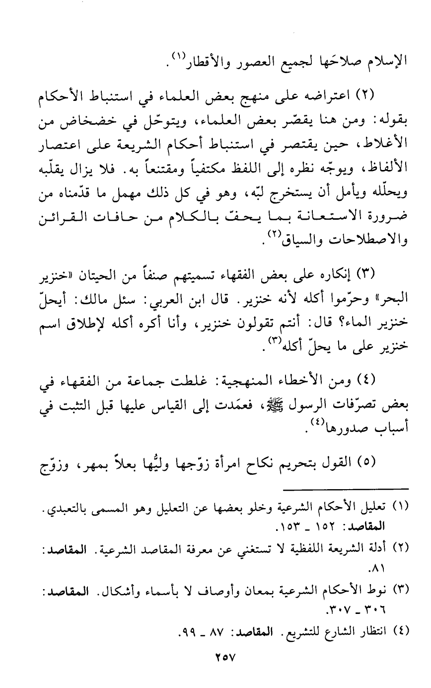 (2) اعتراضه على منهج بعض العلماء في استنباط الأحكام بقوله: ومن هنا يقصّر بعض العلماء، ويتوحّل في خضخاض من الأغلاط، حين يقتصر في استنباط أحكام الشريعة على اعتصار الألفاظ، ويوجّه نظره إلى اللفظ مكتفياً ومقتنعاً به. فلا يزال يقلّبه ويحلّله ويأمل أن يستخرج لبّه، وهو في كل ذلك مهمل ما قدّمناه من ضرورة الاستعانة بما يحفّ بالكلام من حافات القرائن والاصطلاحات والسياق (¬2).