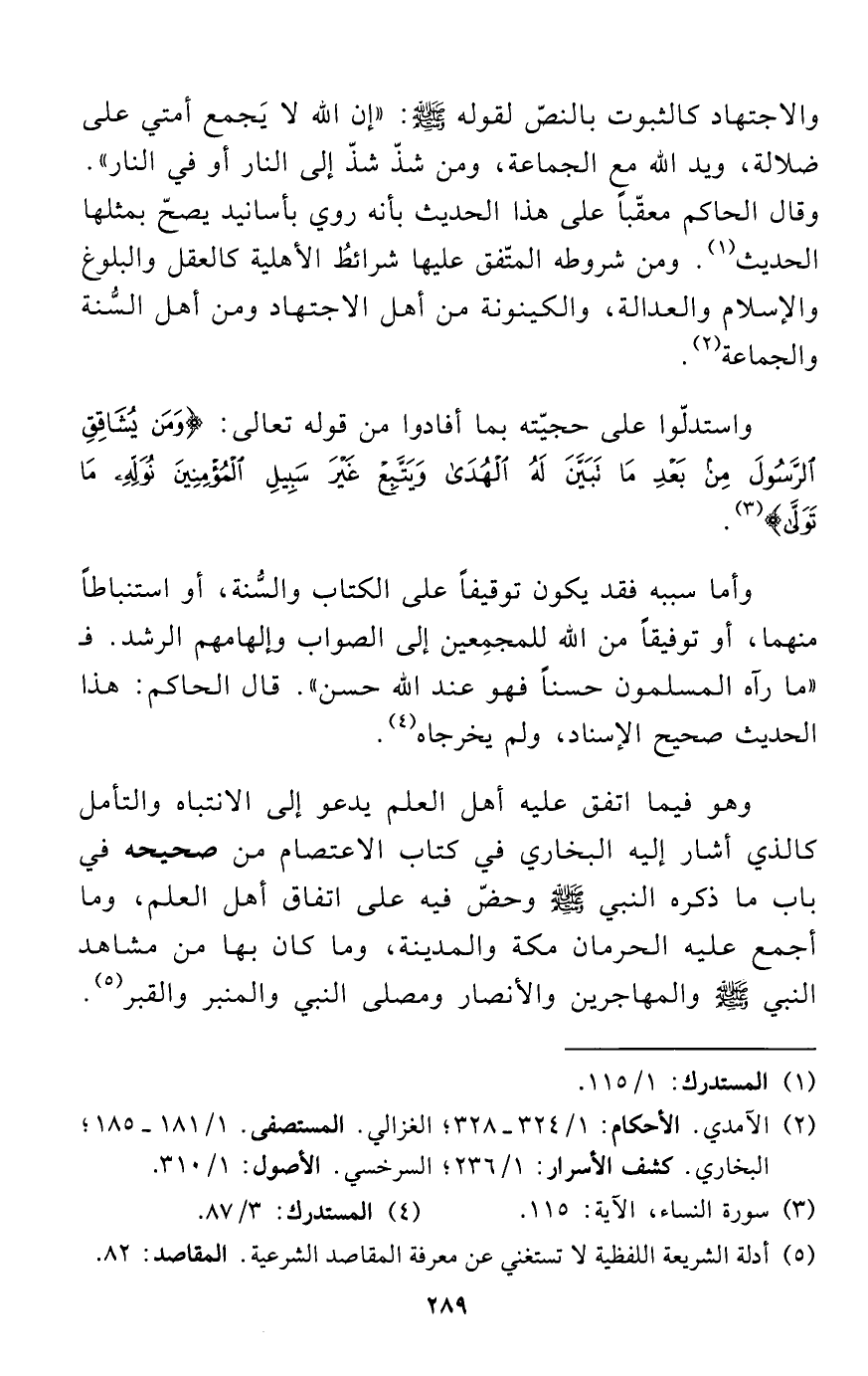 (¬2) الآمدي. الأحكام: 1/ 324 - 328؛ الغزالى. المستصفى. 1/ 181 - 185؛ البخاري. كشف الأسرار: 1/ 236؛ السرخسي. الأصول: 1/ 310.
