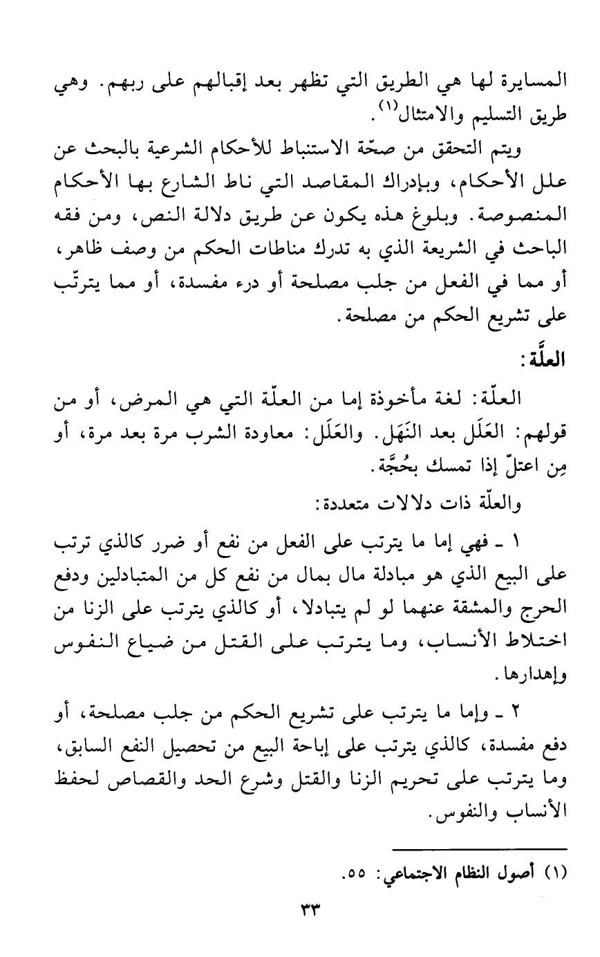 2 - وإما ما يترتب على تشريع الحكم من جلب مصلحة، أو دفع مفسدة، كالذي يترتب على إباحة البيع من تحصيل النفع السابق، وما يترتب على تحريم الزنا والقتل وشرع الحد والقصاص لحفظ الأنساب والنفوس.