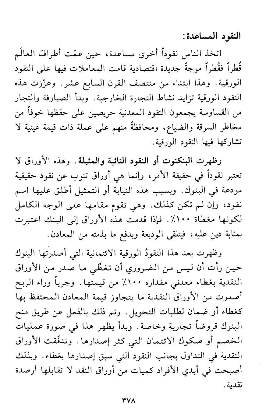 اتخذ الناس نقوداً أخرى مساعدة، حين عمّت أطرافَ العالَم قُطراً فقُطراً موجةٌ جديدة اقتصادية قامت المعاملات فيها على النقود الورقية. وهذا ابتداء من منتصف القرن السابع عشر. وعزّزت هذه النقود الورقية تزايد نشاط التجارة الخارجية. وبدأ الصيارفة والتجار من القساوسة يجمعون النقود المعدنية حريصين على حفظها خوفاً من مخاطر السرقة والضياع، ومحافظةً منهم على عملة ذات قيمة عينية لا تشاركها فيها النقود الورقية.