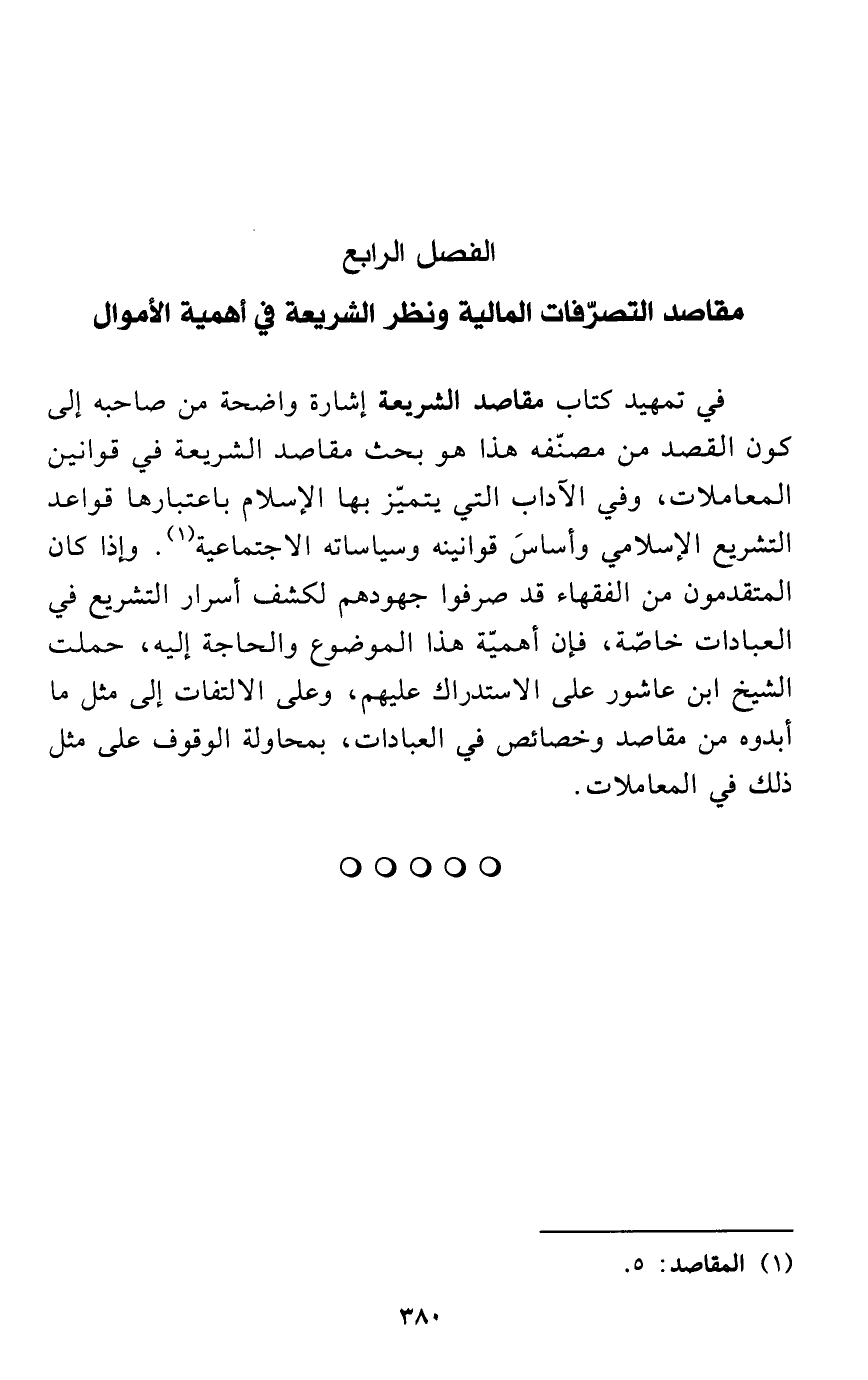 الفصل الرابع: مقاصد التصرّفات المالية ونظر الشريعة في أهمية الأموال