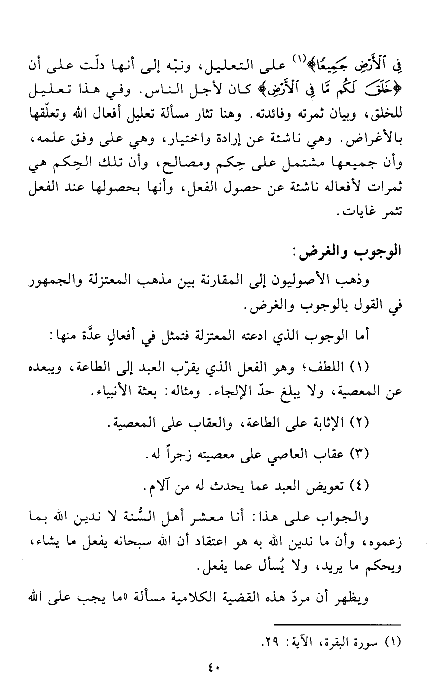 وذهب الأصوليون إلى المقارنة بين مذهب المعتزلة والجمهور في القول بالوجوب والغرض.